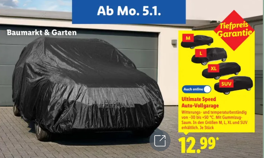 Die Auto-Vollgarage, die du bei Lidl schon für 12,99 Euro kaufen kannst, ist natürlich keine Garage im eigentlichen Sinne. Vielmehr handelt es sich dabei um eine Art Schutzhülle aus wasserabweisendem Polyester, die du über dein Auto legst.