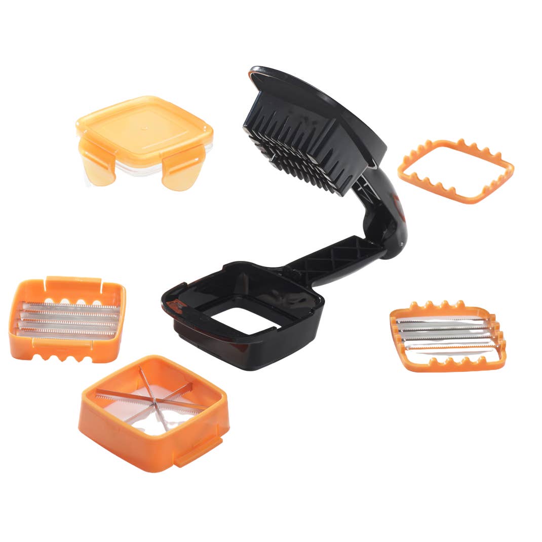 Beim Nicer Dicer Quick handelt es sich um ein praktisches 5-in-1-Küchengerät, mit dem du Gemüse und andere Zutaten in Würfel, Scheiben, Stifte und Sechstel schneidest. Einfach die entsprechende Klinge und die gewünschte Zutat reinlegen, zudrücken und fertig! Das Ganze geht dabei deutlich schneller, als wenn du per Hand schneidest. So lassen sich etwa 30 Würfel oder 10 Scheiben in einem Klick schaffen.