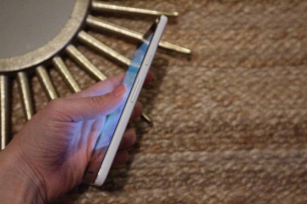 Während die Kamera und der Blitz im glänzenden oberen Drittel sitzten, prangt der Fingerabdrucksensor in einem silbrigen Rahmen bereits auf dem matten Element. Fast unnötig zu erwähnen ist, dass dieser sowie auch die weiteren Buttons am Rahmen aufgrund der geringen Größe des Smartphones für Jedermann bequem zu erreichen sind.