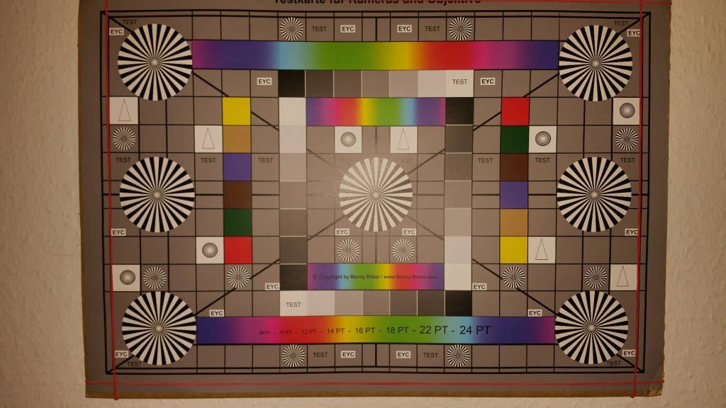 Bei schlechtem Licht oder gar mit der LED im Einsatz beweist sie jedoch, wie scharf sie zeichnen kann und dass ein Blitz auch in einem Smartphone zur Verbesserung der Bildqualität eingesetzt werden kann. Gerade die Schärfe am Rand der Testtafel ist beeindruckend und spricht für eine gute Objektivqualität.
