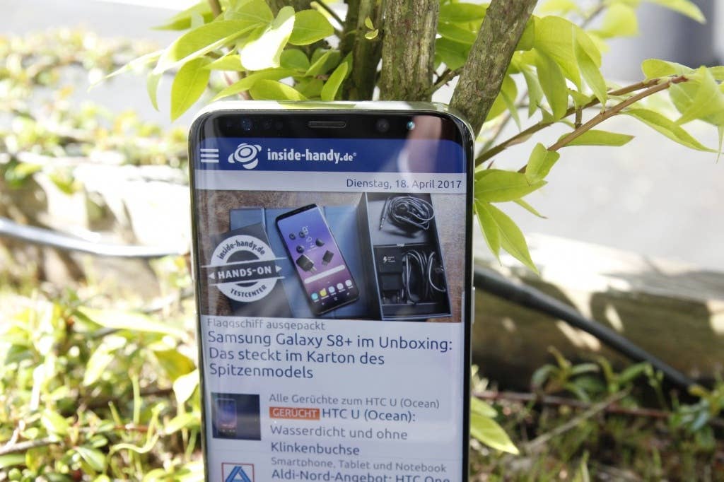 Das Display des Samsung Galaxy S8+ zeigt sich auch bei schräger draufsicht noch farbenfroh und kontrastreich