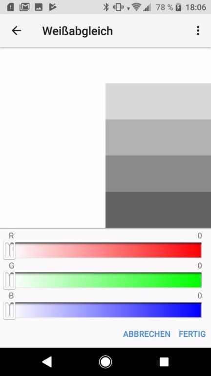 Die restlichen Einstellungsmöglichkeiten sind kleinteilig und detailliert – eben wie man es von einem Flaggschiff erwartet. Neben vorgefertigten Anpassungsprofilen der Farbskala gibt es auch individuelle Möglichkeiten für den Weißabgleich – leider die einzige Möglichkeit einen manuellen Nachtmodus mit weicherem Licht einzustellen.