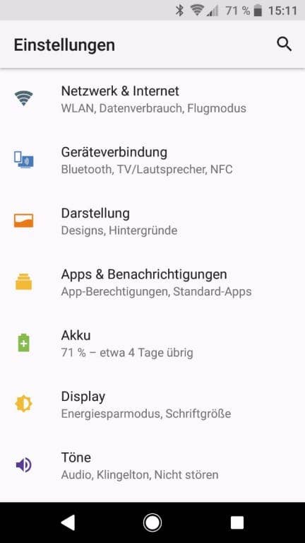 Das Einstellungsmenü ist unter Android Oreo neu gestaltet worden: Weniger Hauptpunkte sorgen insgesamt für eine weniger überladene Ebene, bringen aber zeitlich mit sich, dass mehr Schritte notwendig sind, um die verstecktesten Einstellungen zu finden. Dennoch sind sie ziemlich übersichtlich und mit Plan angeordnet.