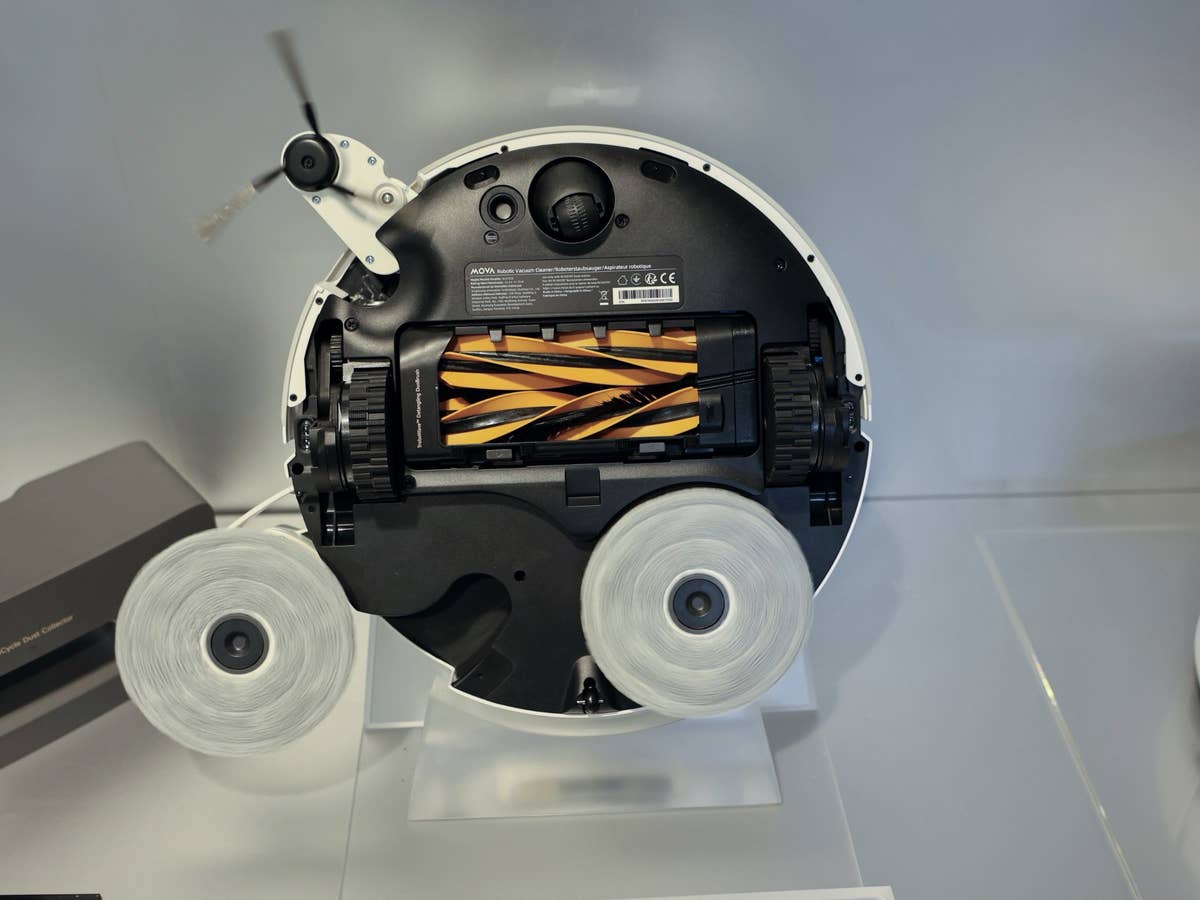 Auch bei der Leistung legt der V70 nach. Mit 40.000 Pa Saugkraft gehört er zu den stärkeren Geräten auf dem Markt. Hindernisse von bis zu 9 cm kann er überwinden, etwa Türschwellen. Im Gerät verbaut Mova einen 6.400-mAh-Akku. Ein weiteres praktisches Detail ist der beutellose Staubbehälter. Optional gibt es eine Variante mit Festwasseranschluss, die es schon bei Dreame mehrfach gab.