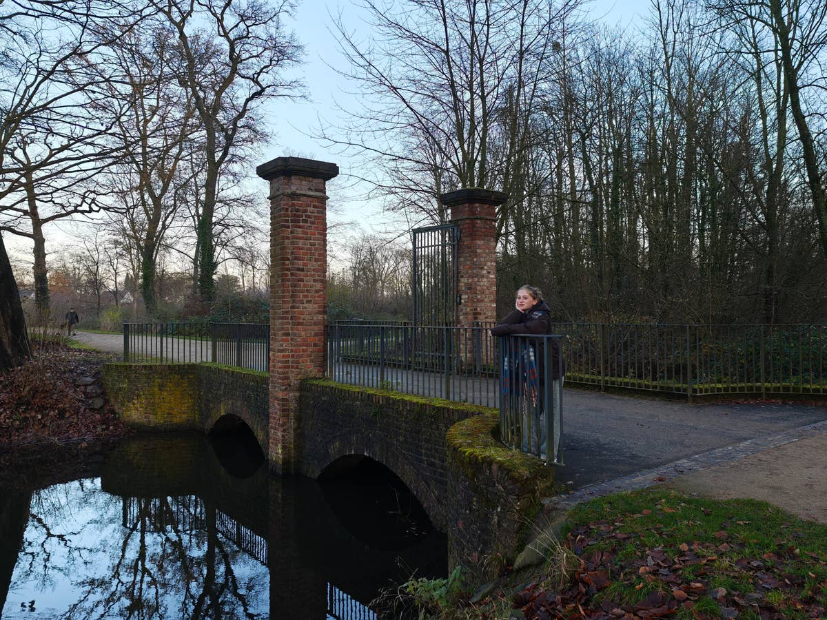 Die Sonne ist hinter den Häusern verschwunden, doch noch ist es nicht komplett dunkel. Mit den kahlen Ästen der Bäume und der gemauerten Brücke müssen die Smartphones viele Details einfangen.