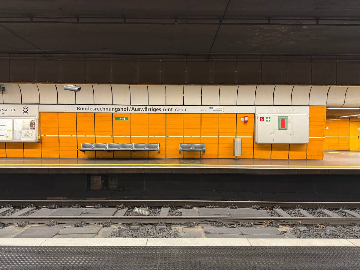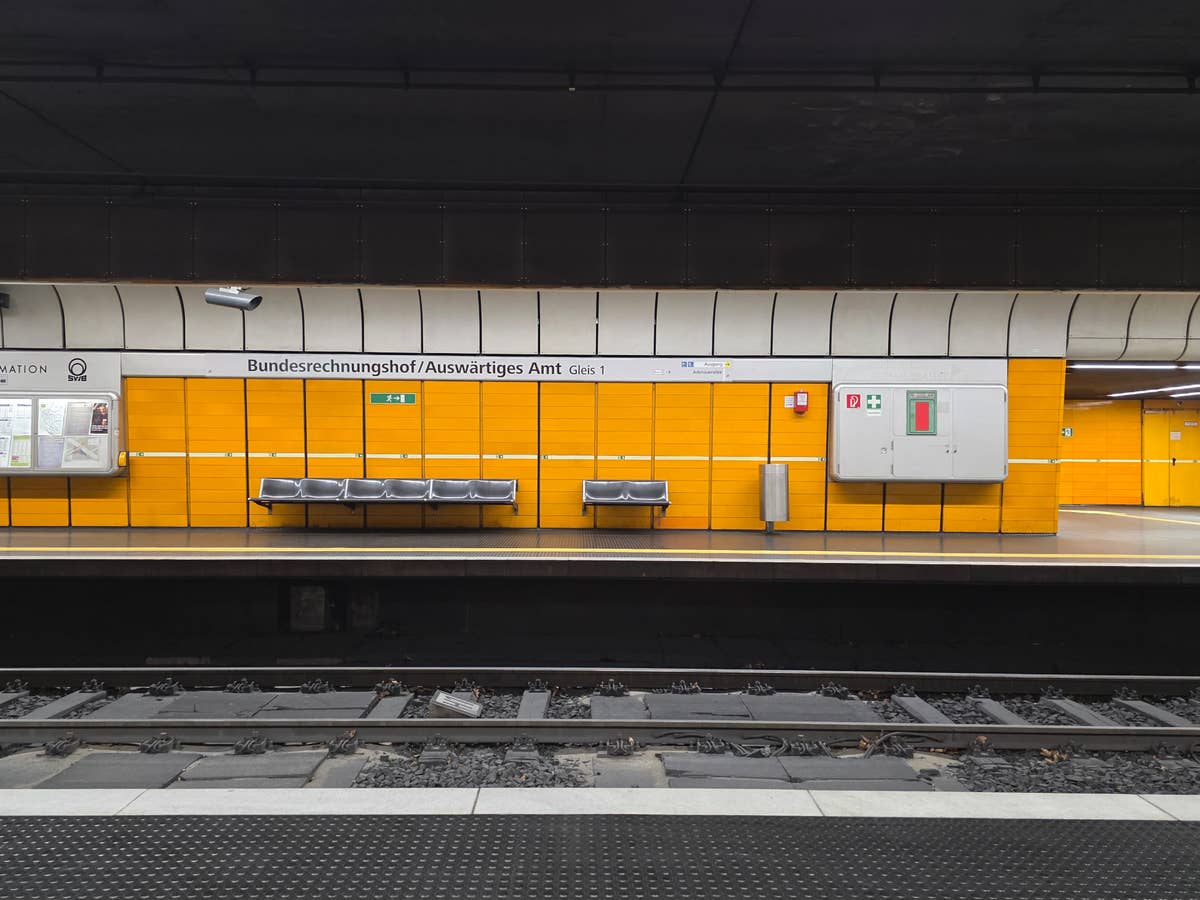 Das grelle Gelb im Neonlicht der Haltestelle und davor die U-Bahn-Schienen in der Dunkelheit. Welches Smartphone fängt die Situation am besten ein?