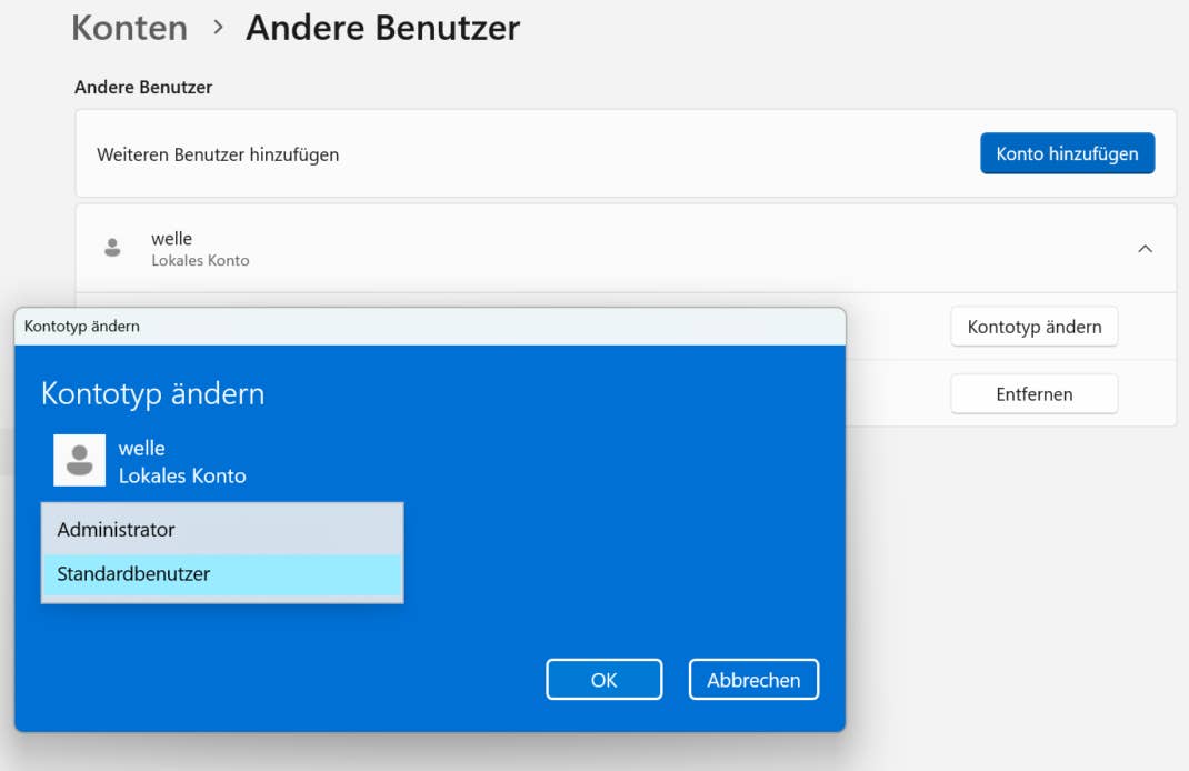Wem das zu umständlich erscheint, der kann auch problemlos im Nachgang auf ein lokales Konto wechseln. Für die Einrichtung genügt es, in die Einstellungen zu navigieren und hier den Unterpunkt „Weiteren Benutzer“ zu wählen.