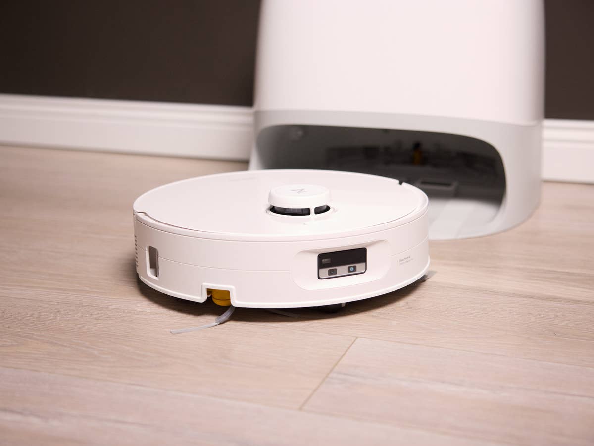 Die Station sieht fast eins zu eins wie beim Vorgänger aus. Sie kümmert sich um das Ausleeren des Staubbehälters und übernimmt das Waschen und Trocknen der Wischwalze. Auf einen separaten Tank für Putzmittel musst du bei diesem Modell allerdings verzichten.