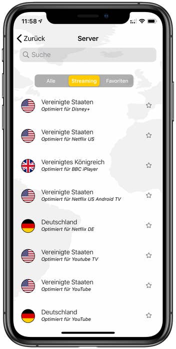 Für viele dieser Dienste auf der Übersicht gibt es einen extra optimierten Server, mit dem du dich verbinden kannst. Dieser lässt sich in der App oder dem Programm auswählen. Jedoch bist du jedoch nicht auf die Auswahl dieser 40 Seiten beschränkt. Auch andere nicht in Deutschland verfügbare Dienste lassen sich nutzen.