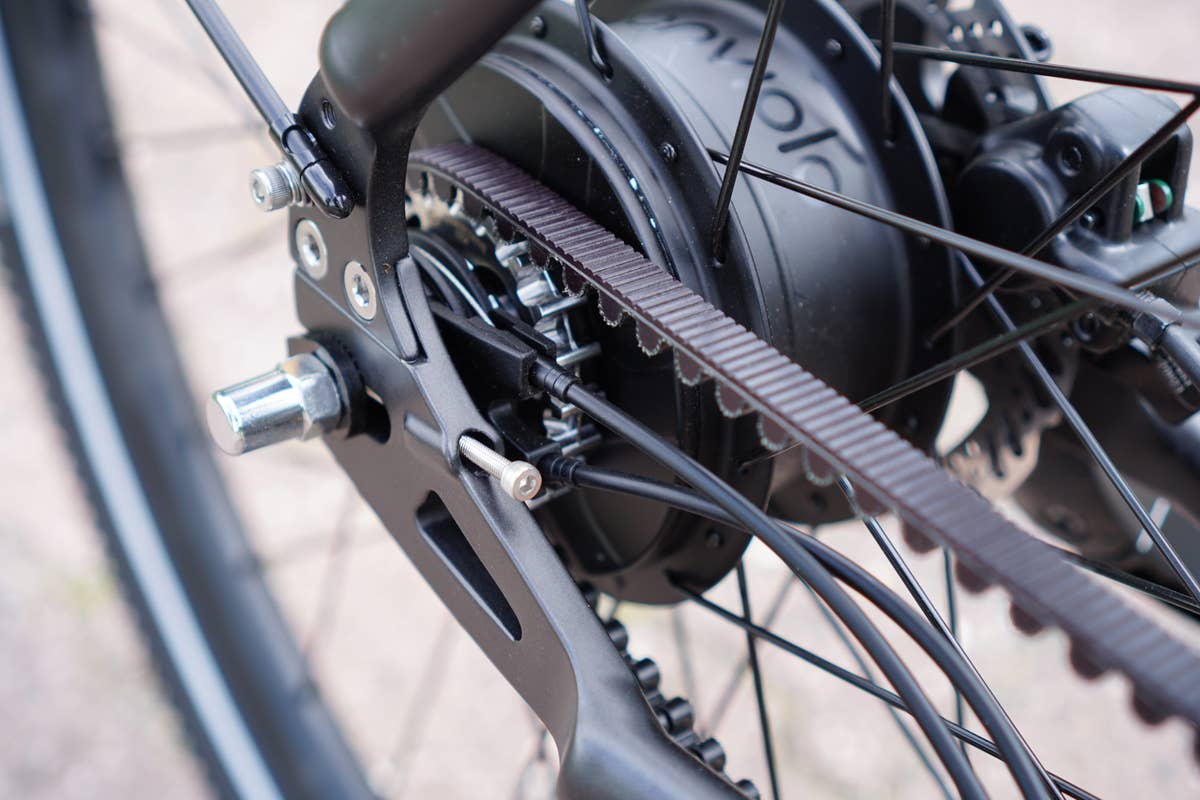 So viel zur Optik und Steuerung. Doch wie sieht es mit der Hardware aus? Zum technischen Portfolio des Lekker Amsterdam GTS gehört in erster Linie ein Bafang-M420-Mittelmotor mit einem 80-Nm-Drehmoment, der die Leistung automatisch an die Tretkraft anpasst. In unserem Test funktionierte das in Kombination mit einer stufenlosen Enviolo Schaltnabe ausgezeichnet. Bemängeln können wir an dieser Stelle nichts. Ansonsten bietet das Elektrofahrrad einen geräuscharmen Gates CDX Riemenantrieb, Tektro hydraulische Scheibenbremsen (jeweils 160 mm) und Schwalbe G-One Allround-Reifen (29″ x 2.25).